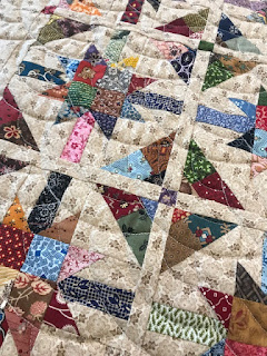 The three HST quilts are for the teenagers.  I pieced them with bargain fabric from Amitié Textiles, Torquay that I bought on one of our bus trips years ago.